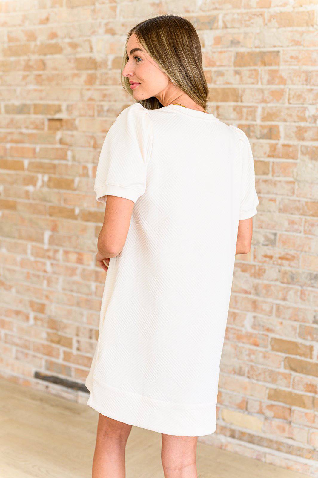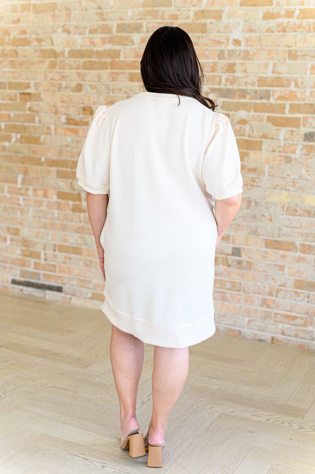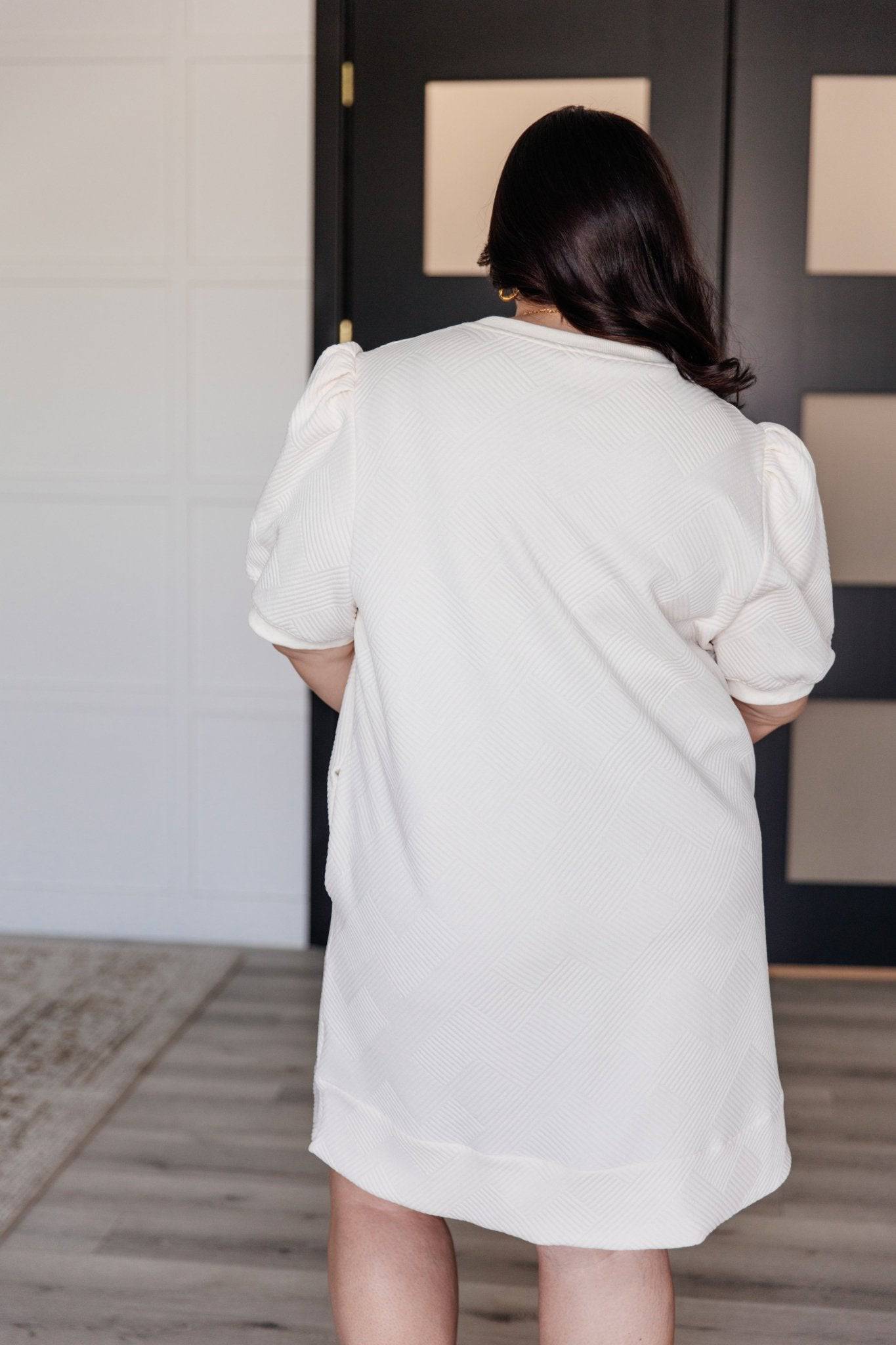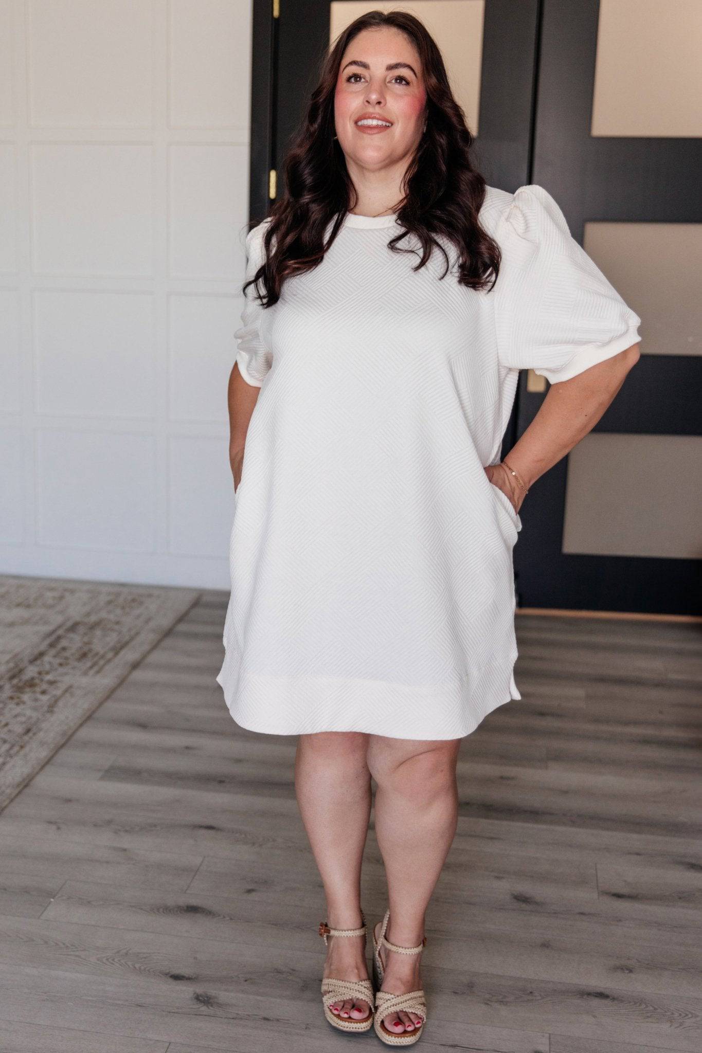 Stay stylish and comfortable with our Across Town Puff Sleeve Quilted Dress! Made from a midweight woven fabric, this dress features a unique quilted texture that adds dimension to any outfit. The round neckline and ribbed sleeve cuffs create a flattering silhouette, while the functional side pockets and exaggerated hemline add a touch of convenience and edge. With a side slit and balloon sleeves, this dress is perfect for a day out on the town.