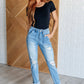Aiden High Rise Patch Pocket Distressed Boyfriend Jeans