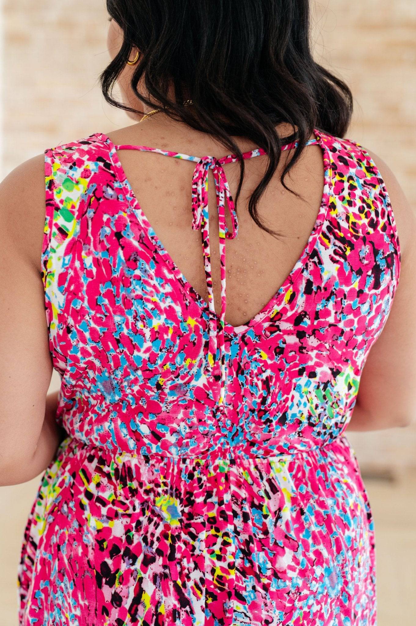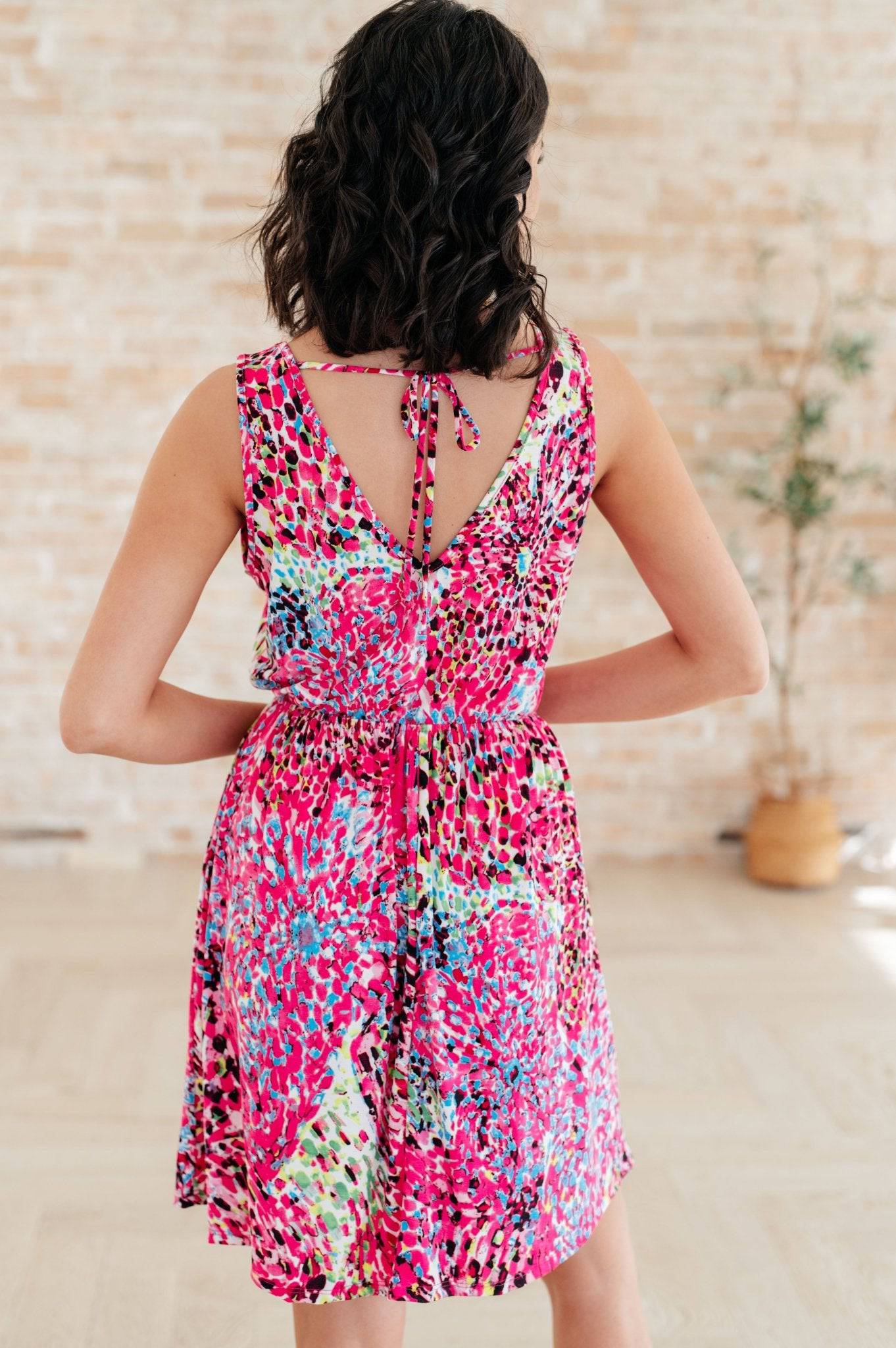 Indulge in effortless style with our Bless Your Heart V-Neck Dress in Neon Fuchsia! Made from luxurious Bulgari fabric, this dress features a flattering V-neck tank design and a functional back tie for the perfect fit. The cased elastic waistband and side pockets add convenience to this must-have dress.