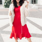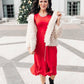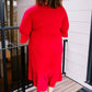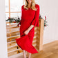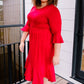 The Cloudy Skies Dress in Crimson a showstopper! This stunning red dress has a beautiful fitted bodice with a soft flowing skirt. We love the added tier at the bottom of the skirt that adds another classy element to this dress. Pair it with heels and a clutch purse for a night out look.
