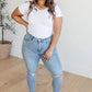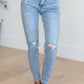 Introducing Eloise Mid Rise Control Top Distressed Skinny Jeans- the perfect blend of comfort and style. With our tummy control technology and 4-way stretch, these jeans offer a flattering fit and ultimate comfort. The light wash and distressed knees add a touch of edginess to the classic skinny fit.