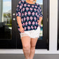 The Essentially You Top in Navy and Pink Daisies is the perfect blend of style and comfort. The boat neck and batwing sleeve add a touch of elegance, while the high low scooped hem and banded sleeve cuff create a flattering silhouette. Made with bulgari fabric, this top is flowy, breathable, and oh-so-comfortable. (How can you resist?)