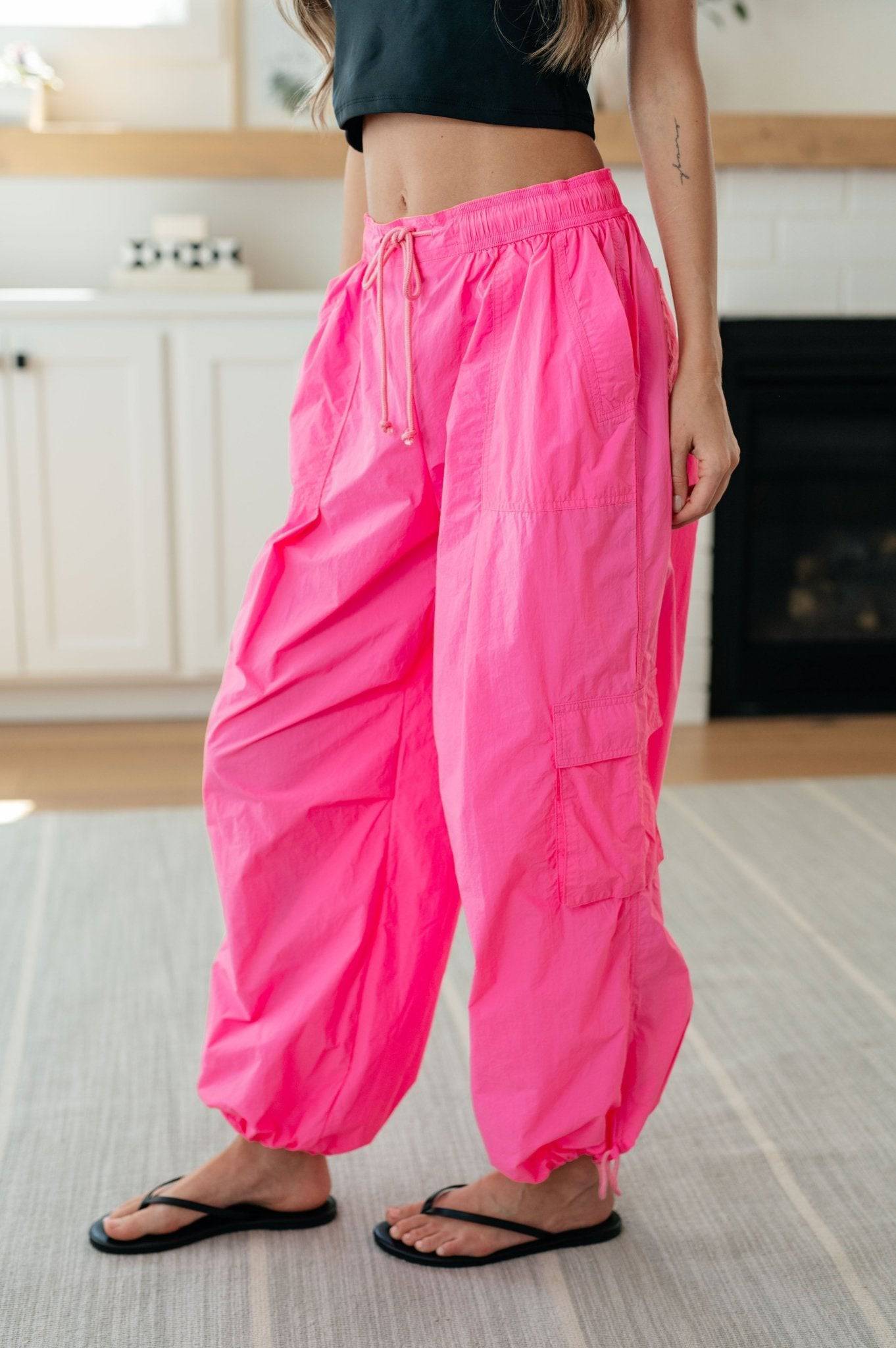 Be a fashion frontrunner in our First Place Cargo Pants! Made with windbreaker material for all-weather wear, these pants feature a functional drawstring, side and cargo pockets, and drawstrings at the cuffs. With added back pockets, you'll stay one step ahead while looking effortlessly cool.