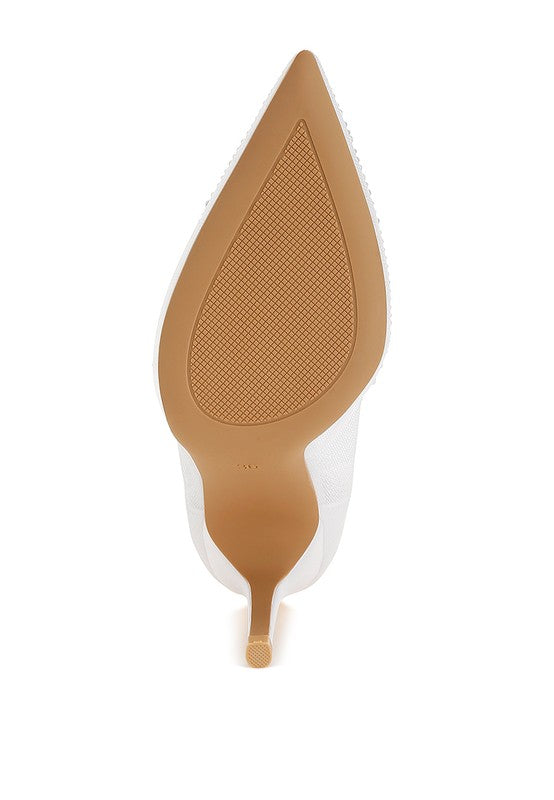 High Ball Mesh Rhinestone Stiletto Pumps