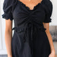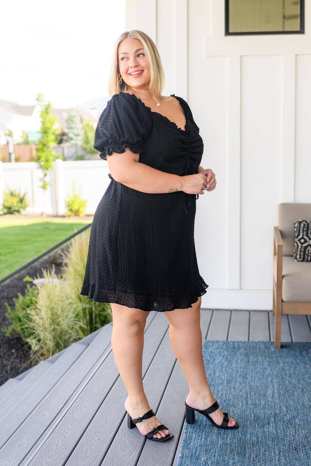 Indulge in a luxury look with the It's Cocktail Hour Ruffle Detail Dress. This captivating dress features delicate Swiss Dot lined fabric with adjustable ruching, a smocked back, and a fluttering ruffle detail to complete the look. Dare to make an entrance!