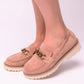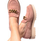 Slip into style with Literally Loafers in Blush Faux Suede by Corkys. These playful slip-ons feature a 1.5" chunky heel, faux suede material, and chic chain detail. Easily pull them on for a fun and fashionable look. Perfect for adding a quirky touch to any outfit!