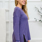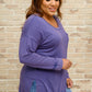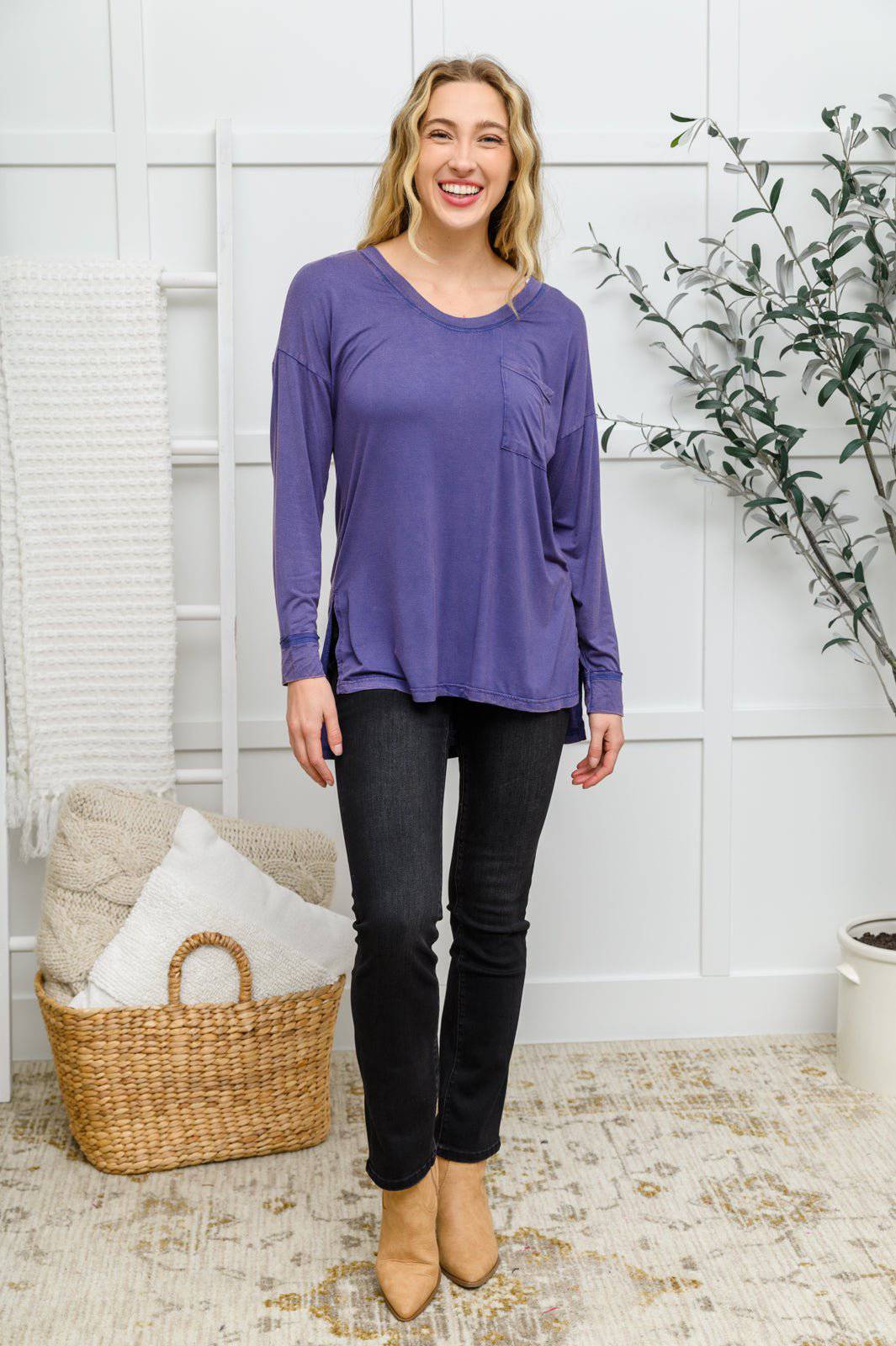 Long Sleeve Knit Top With Pocket In Denim Blue