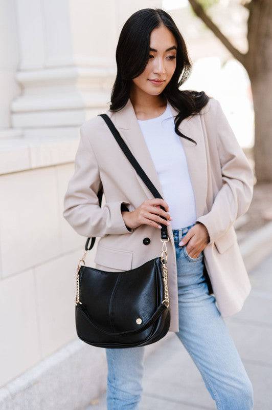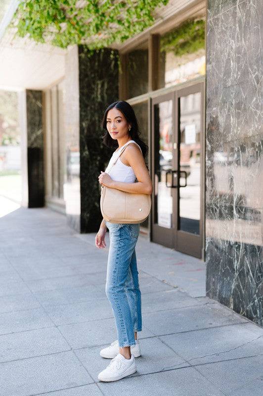 This stunning saddle bag transforms seamlessly from a handbag to a crossbody thanks to two interchangeable straps. You'll adore the versatility this bag offers!
