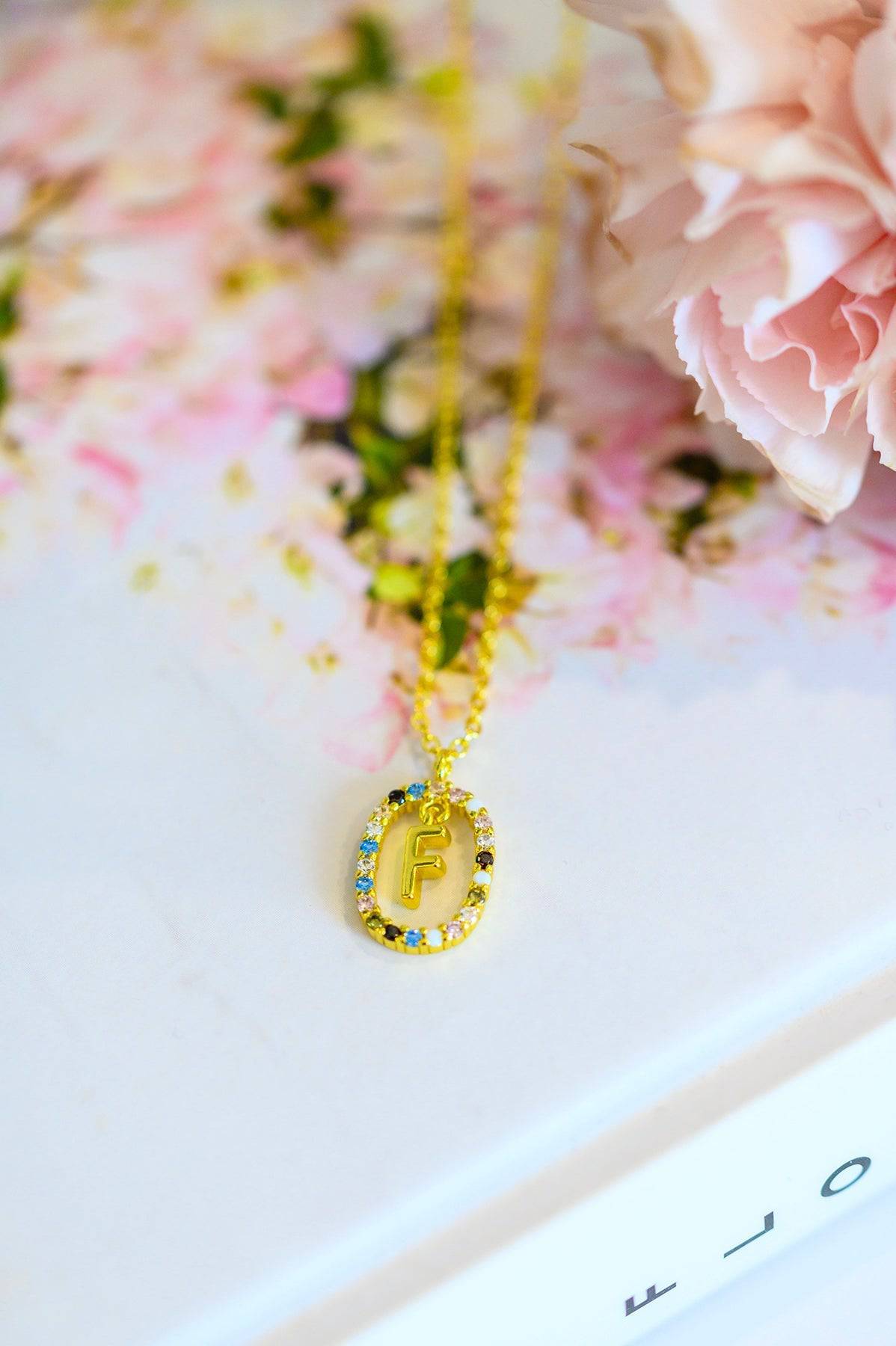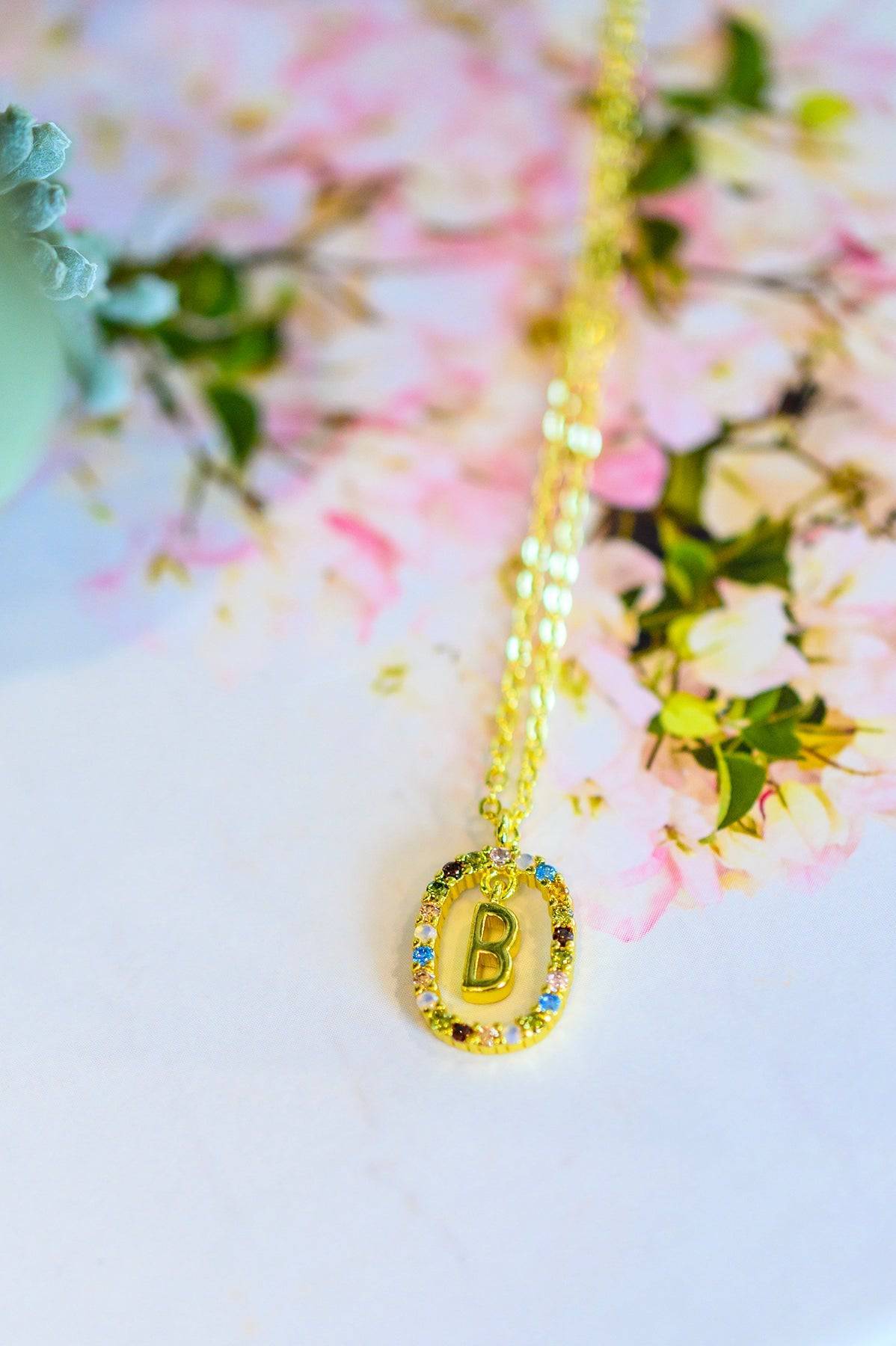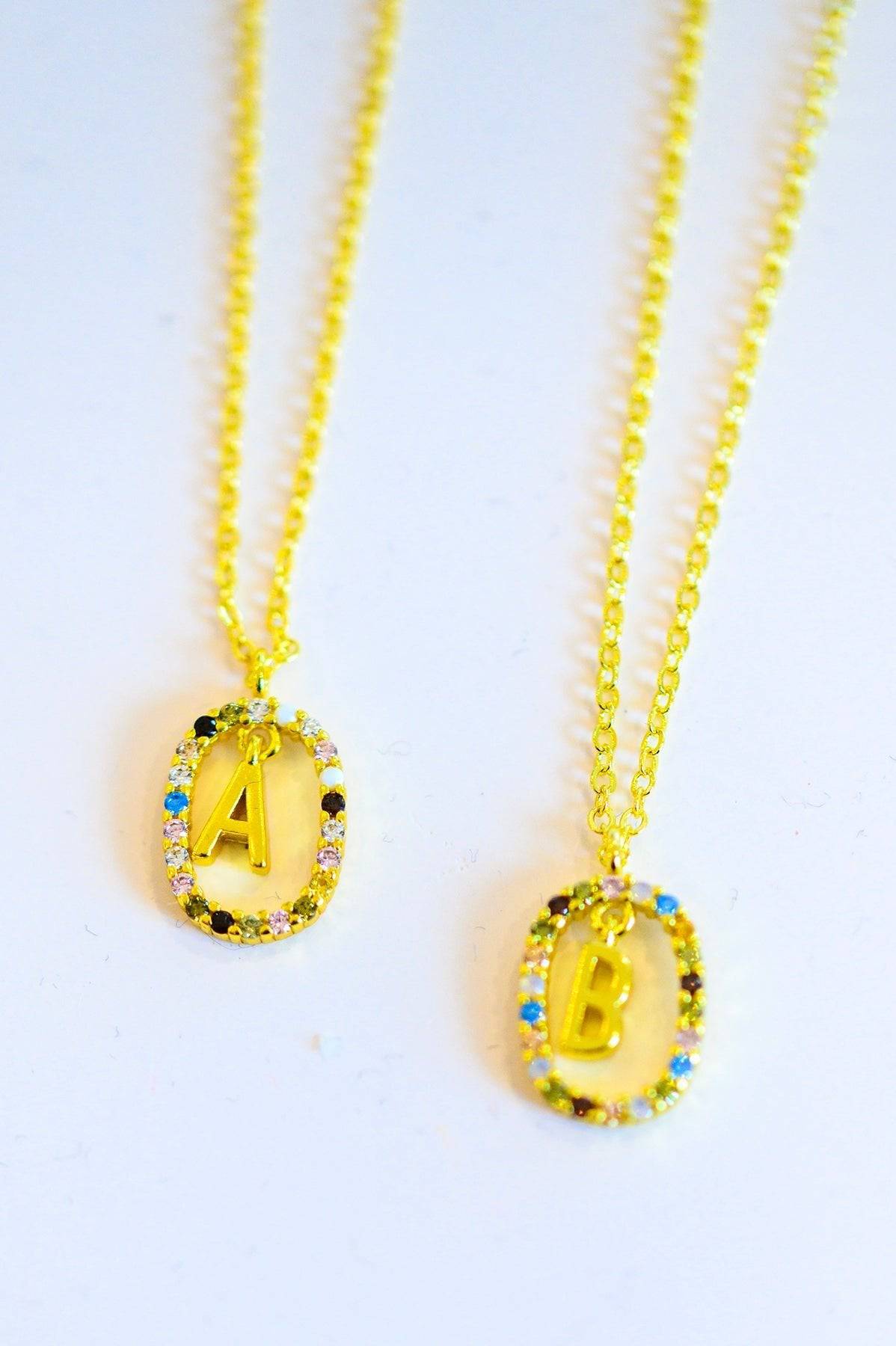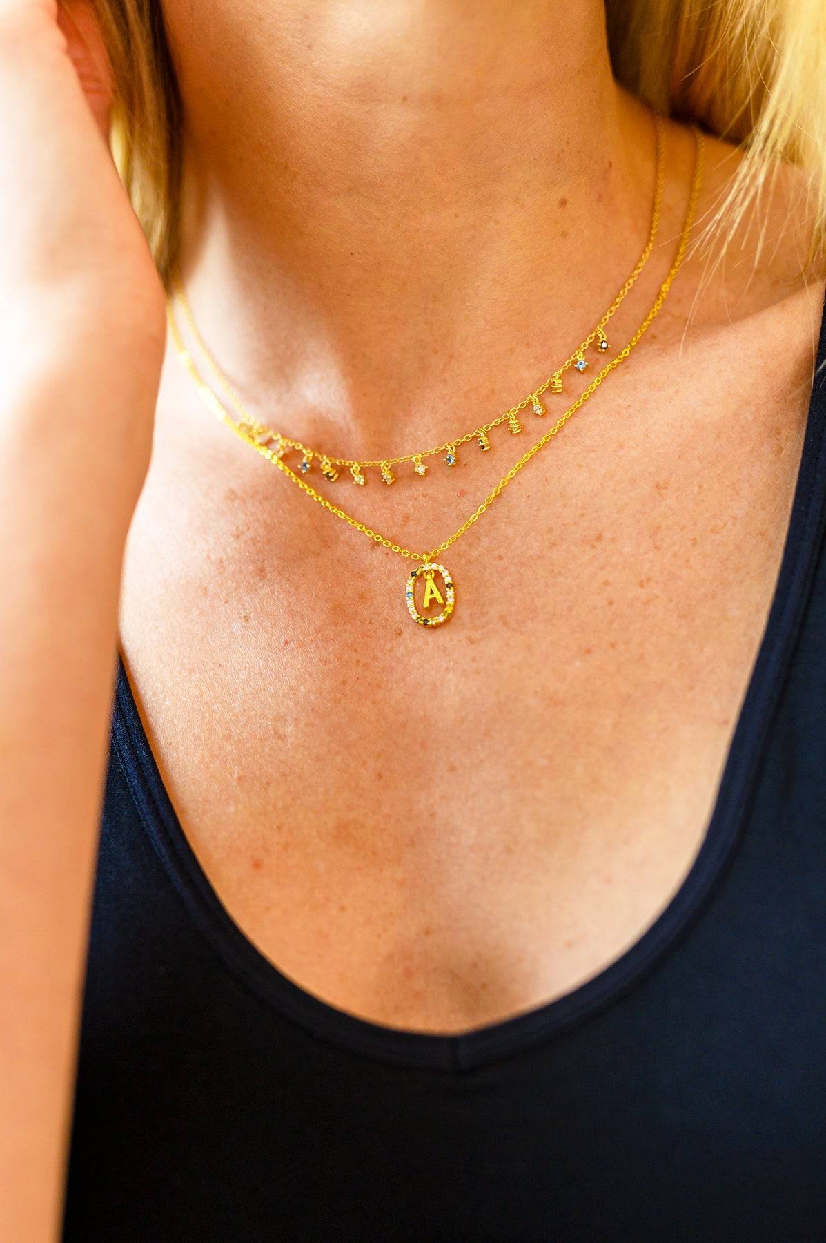 With self-love as a permanent state of mind, the Mi Amor Gold Dipped Initial Necklace exudes uniqueness and celebrates confidence in your story. The squared oval pendent is dripping with semiprecious stones, and features a floating 18k gold initial inside. Layer this piece with any of our other 18k gold pieces for a look that empowers your true self to your name out loud. Your name, your story.