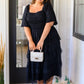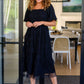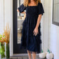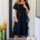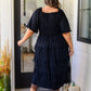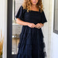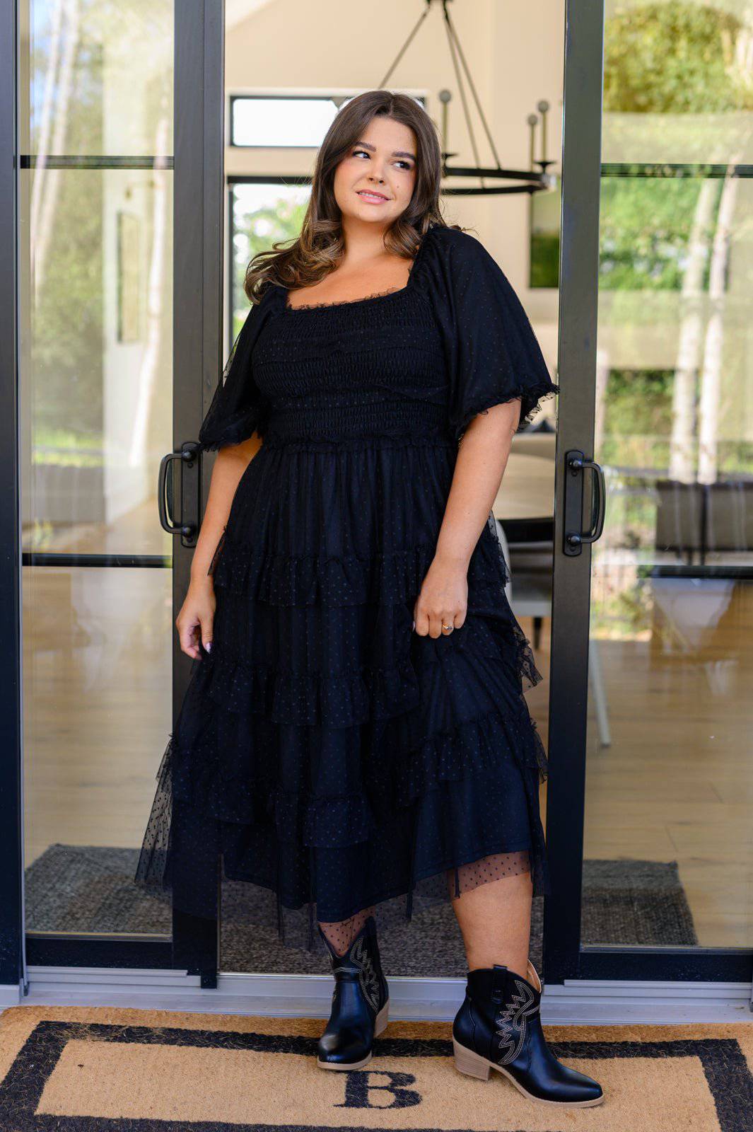 Dance the night away in our Midnight Waltz Midi Dress! With a luxurious square neckline, romantic flutter sleeve, and exquisite swiss dot tulle overlay, you’ll feel like you’re floating! The smocked elastic bodice and tiered skirt are finished off with a glamorous ruffle detail that will make you feel gorgeous. Let the evening begin!