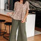Add a touch of luxury to your wardrobe with our Mocha Petals V-Neck Top. Made with bulgari knit fabric, this top is soft and comfy. The V-neckline and dolman sleeve add an elegant touch, while the tacked sleeve cuffs and peplum design add a playful flair.