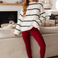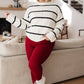 More or less the perfect transitional layer is the More or Less Striped Sweater. This lightweight sweater knit is designed with contemporary stripes, giving a modern sensibility to this timeless wardrobe staple. Featuring a round neckline, dropped shoulder, long sleeves and classic black stripe with a center front seam detail, this stylish piece is sure to enhance any casual or semi-formal look.
