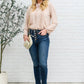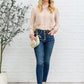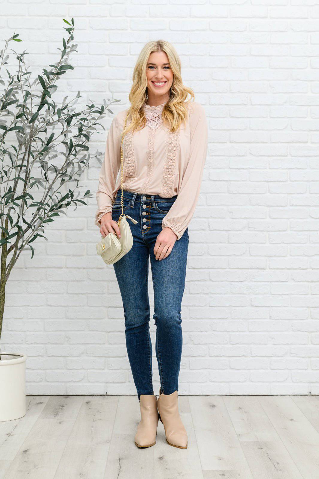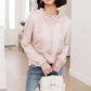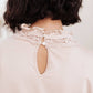 Keywords: Pink top, Ruffle, Lace, Crochet, Mockneck