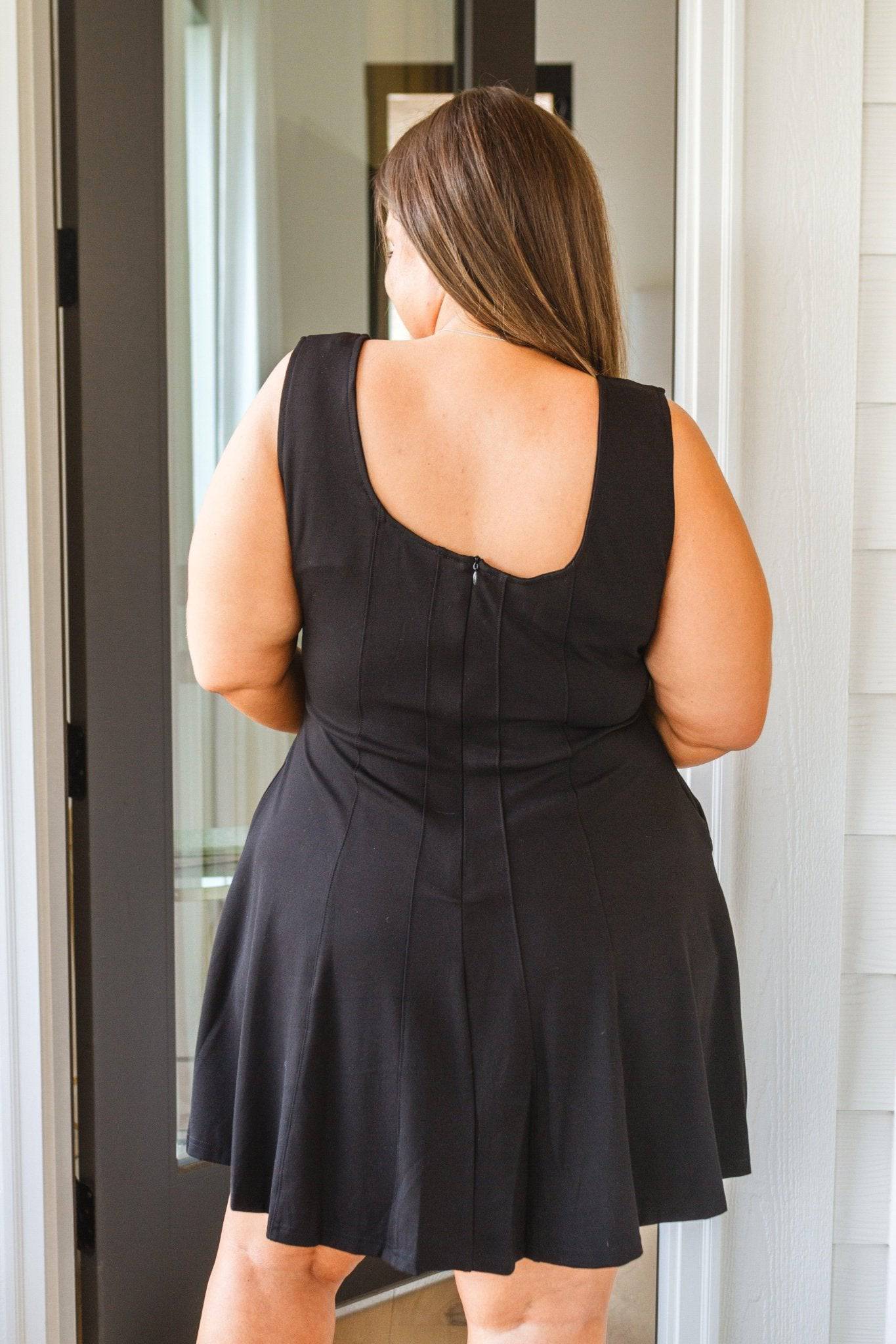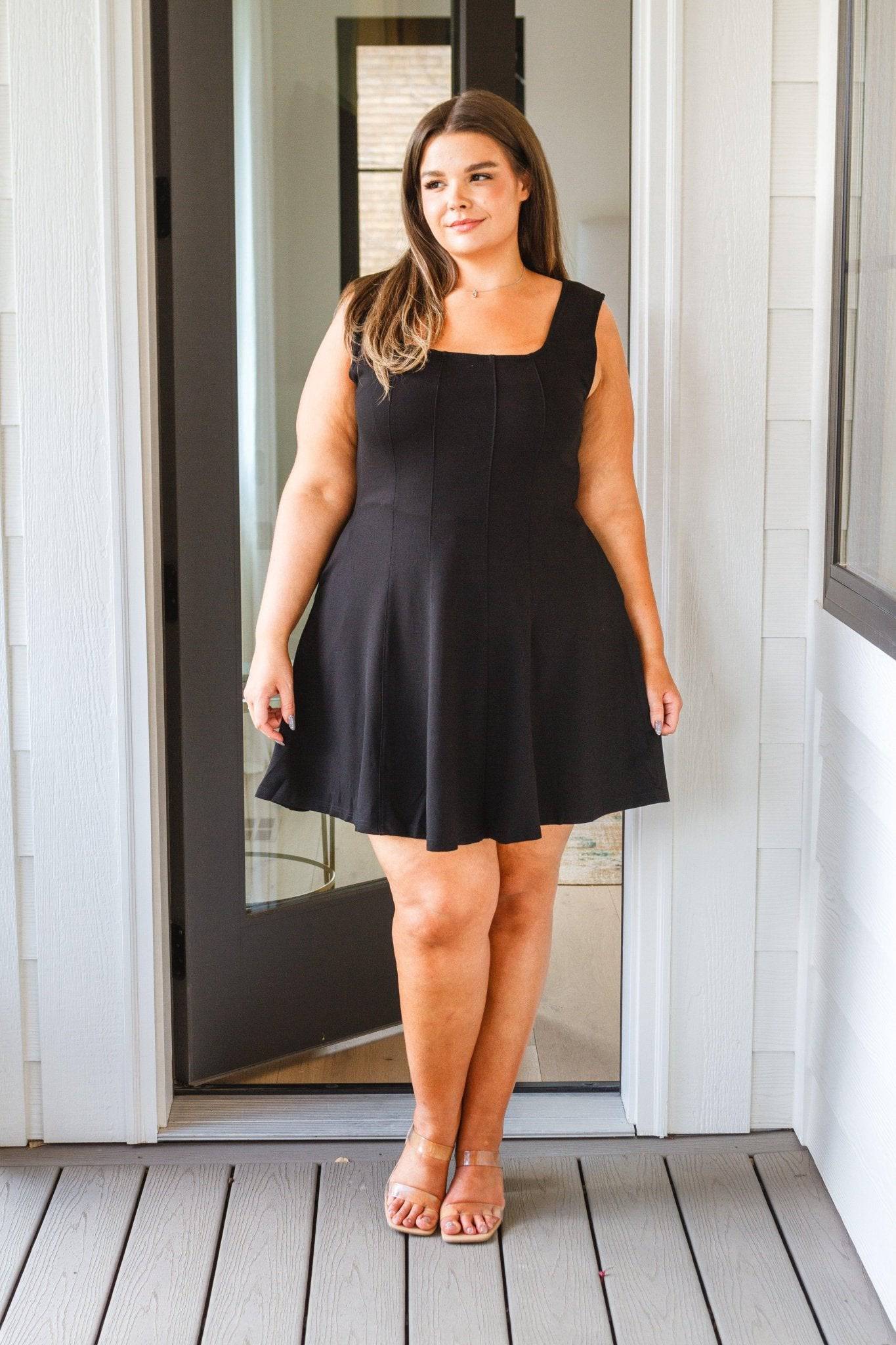 Discover a timeless classic with our Polo Match Square Neck Dress. Its sleek square neckline and contoured seaming combine for a tailored fit that flatters the skater silhouette. Add a fresh, effortless look to your closet with this little black dress.