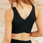 Feel the luxurious feel in the Read My Mind V-neck Cropped Tank. The molded cups provide support and a flattering fit, while the faux wrap back adds a touch of style that allows for easy styling. Lined in the front for added comfort, this tank can be dressed up or down for any occasion. Experience the comfort and versatility of Read My Mind.