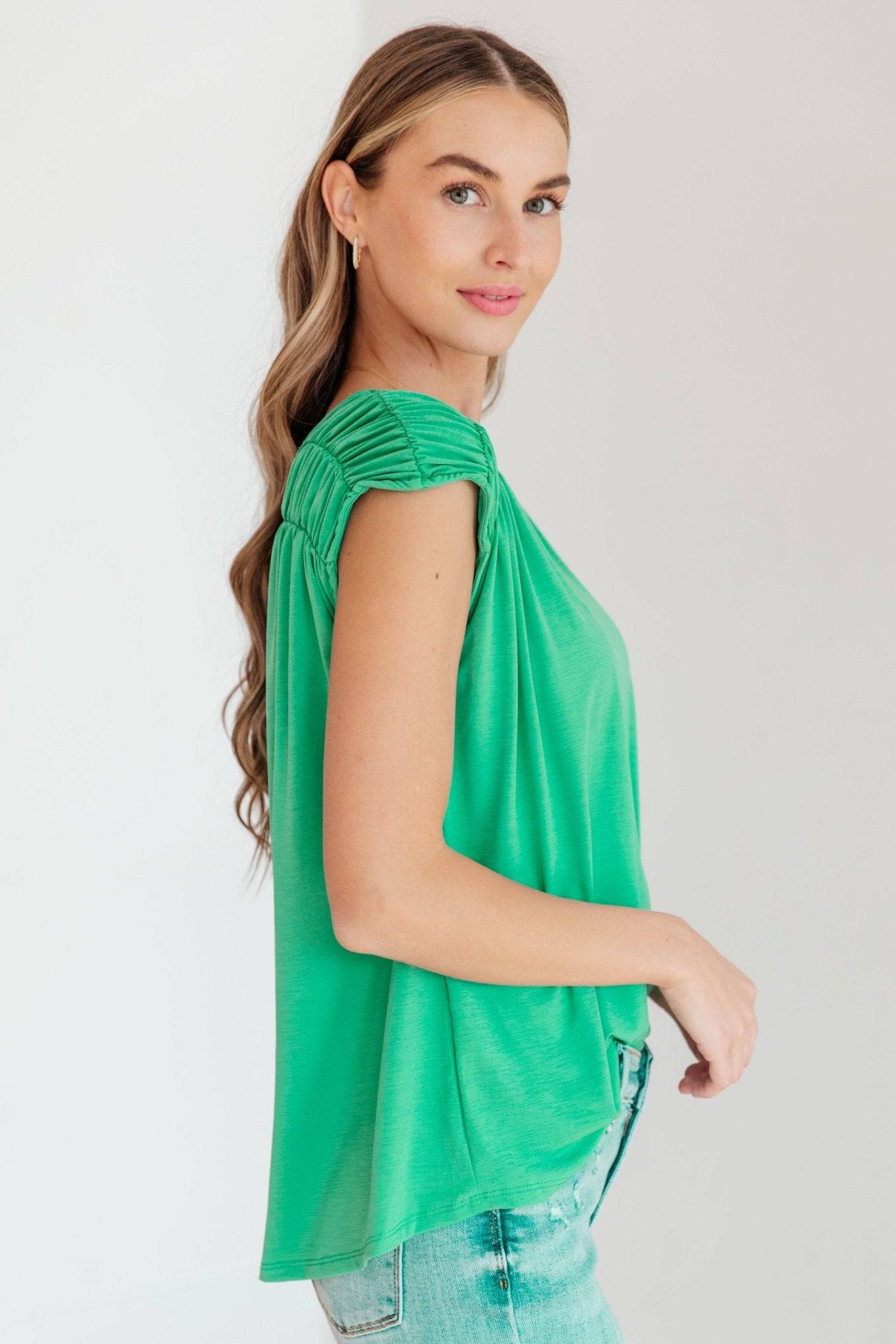 Effortlessly cool and playful, our Ruched Cap Sleeve Top is a must-have addition to your wardrobe. The gathered elastic shoulders and tie back create a relaxed fit, while the bulgari fabric keeps you cool and wrinkle-free. Perfect for a casual day out or a fun night in.