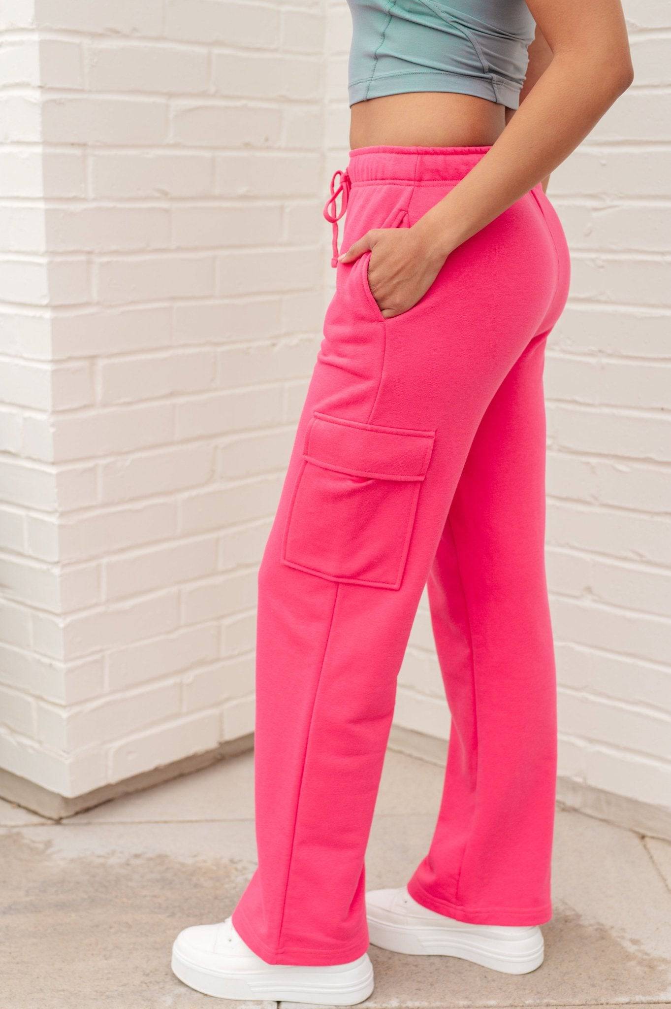 Run, Don't Walk Cargo Sweatpants in Flamingo Pink