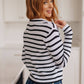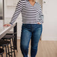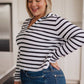 Stay cozy and on-trend with this Self Improvement V-Neck Striped Sweater. This lightweight sweater knit features a classic stripe print, with a collared v-neckline to complete the look. With timeless style and comfort, it's the perfect addition to your wardrobe.