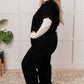 Show off your style in the Tilda Short Sleeve Jumpsuit. With its slimming tummy control panel and 4-way stretch, this denim jumpsuit is both comfortable and flattering. The garment-dyed black color and front and back pockets add a touch of edginess to the straight leg silhouette. Make a statement in this must-have piece.