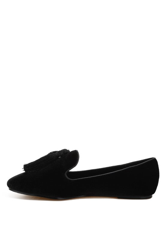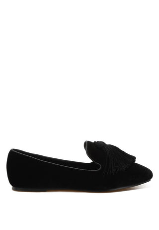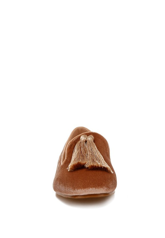 Elegant with an eclectic edge, these classic tassel-detailed, round-toed loafers, crafted with a luxurious velvet upper, are your go-to footwear for special occasions or for looks that demand exclusive footwear.