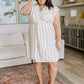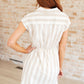 Look stunning in this Twisted and Tailored Striped Dress! Featuring a woven stripe, knotted front, and deep v-neckline, this flattering dress is sure to turn heads. Its cap sleeves, faux wrap skirt, and elastic waistband further accentuate your figure for a beautiful silhouette.