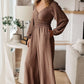 Look effortlessly stylish in this Wandering Vista Wide Leg Jumpsuit. Boasting a crinkle woven fabric, cased elastic waistband, long sleeves, wide leg and pockets - this jumpsuit is a must-have for any wardrobe. Perfect for any occasion, you'll be sure to make a statement.
