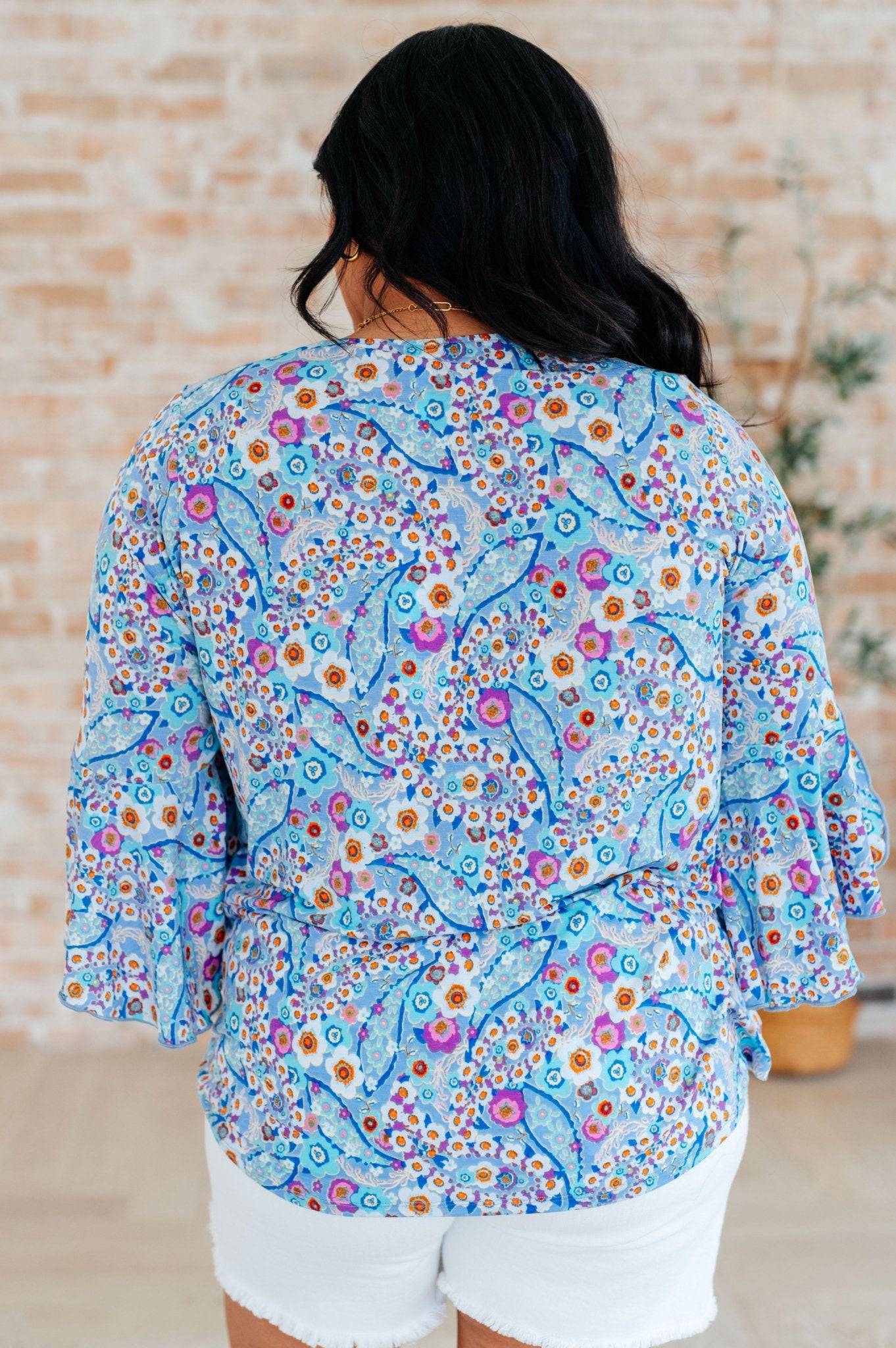 Willow Bell Sleeve Top in Retro Ditsy Floral